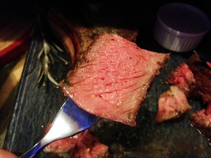 Перед подачей дайте мясу полежать 5 минут в фольге - золотое правило приготовления толстых кусков мяса.