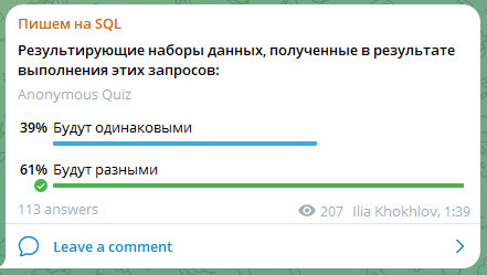 Результирующие наборы данных, полученные в результате выполнения этих запросов, будут одинаковыми или разными?