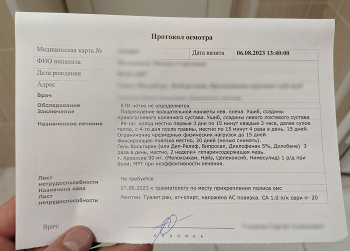 Повредил оба колена, локоть и самое печальное вращательную манжету в плече.