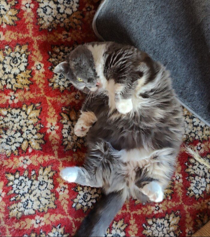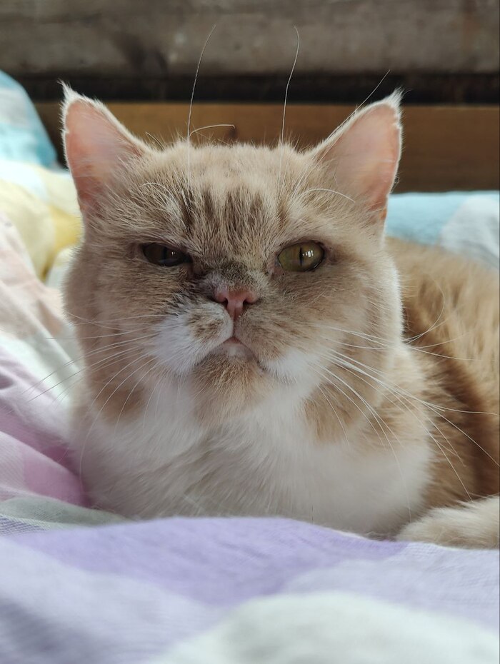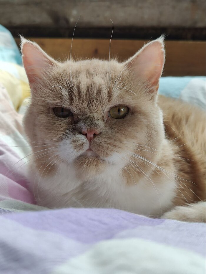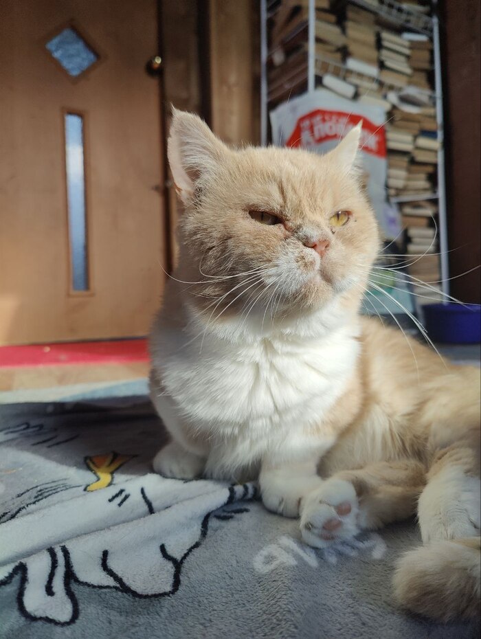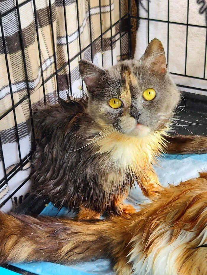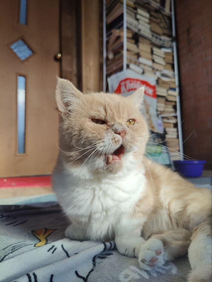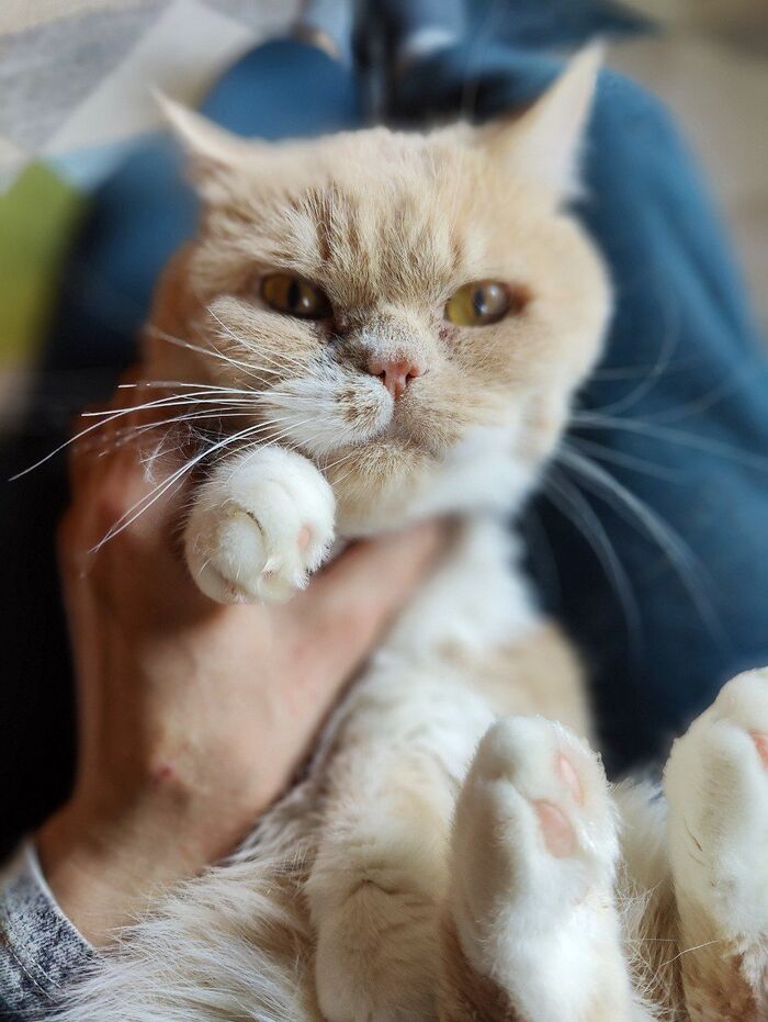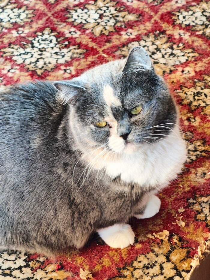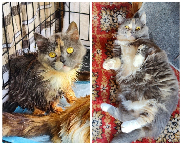 Когда Пуфа попала ко мне, я думала, что она была не такая уж худая на фоне остальных. Но оказалось что это из-за ее пушистой шерсти. На самом деле под ней она была скелетик. Ещё она всего боялась. Ее нельзя было потрогать без того, чтобы он не заистерила, не ударила меня лапой. В добавок, у нее был махровый поликистоз. Приводила я ее в порядок долго и упорно.