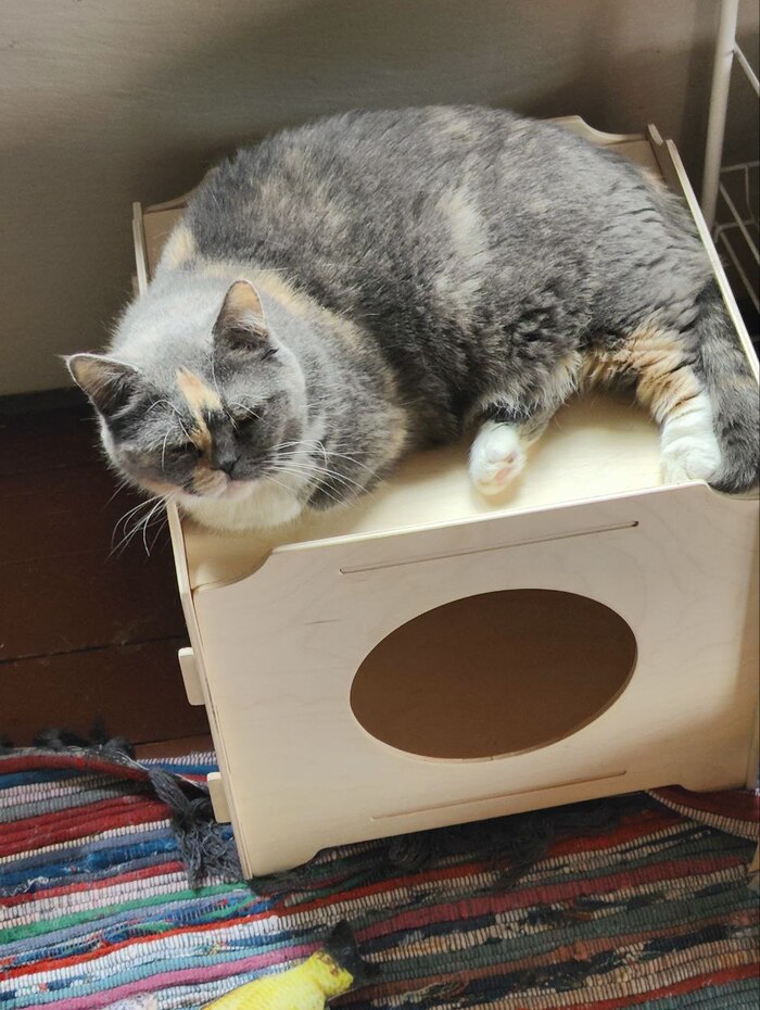 Поэтому, как бы грустно это не звучало, теперь никаких вкусняшек. Только корм с отрубями, домашний паштет и много движения. На самом деле, она сама хорошо справляется, так как очень любит гонять по котовнику и забираться на самый верх, где обычно никто не бывает.