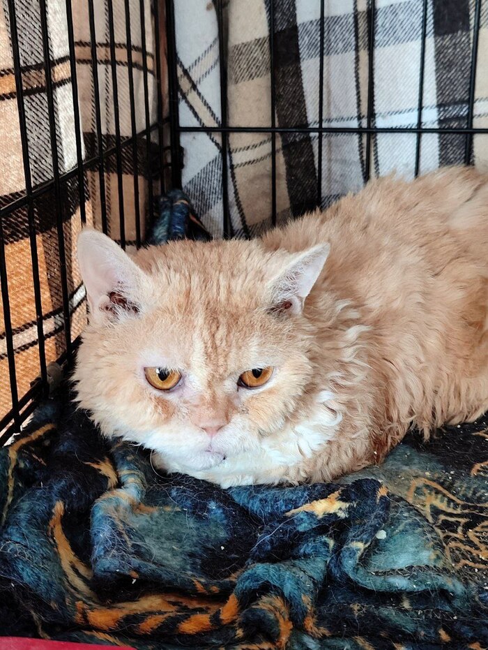 12 летняя манчкин Бабулио из утилизационного сарая заводчика спустя три недели после удаления зубов и терапии