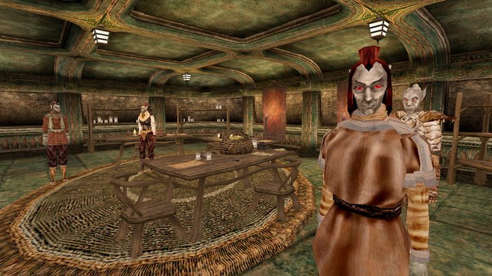 А вот лягушки у аргониан в большом почете. Из них делают музыкальные инструменты. Такие стоят по кабакам с преимущественно ящерной клиентурой. Кстати, лягушки в этих инструментах живые и их надо кормить.