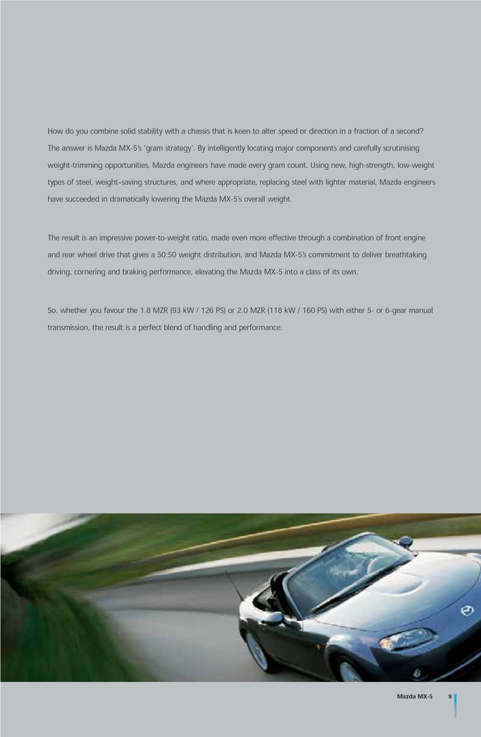 Технические изменения: базовый атмосферник 1.5 (132 л.с.) стал мощнее на 4 л.с., но эта прибавка доступна только при работе на высокооктановом бензине. Отдача двухлитрового мотора не изменилась (184 л.с.). Коробок передач по-прежнему две — шестиступенчатые АКПП и МКПП. Родстеры с механикой оснащаются новым дифференциалом повышенного трения, который обеспечивает разную степень блокировки при ускорении и торможении. Также улучшен отклик на педаль газа, а у системы стабилизации появился специальный режим Track, в котором электроника практически не вмешивается в процесс вождения.