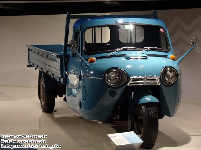 А вот интересный экземпляр - трёхколёсный грузовичок Mazda T2000, который выпускался с 1958 по 1974 годы. Мода на трехколесные средства передвижения, как видите, была вплоть до середины 70-х.