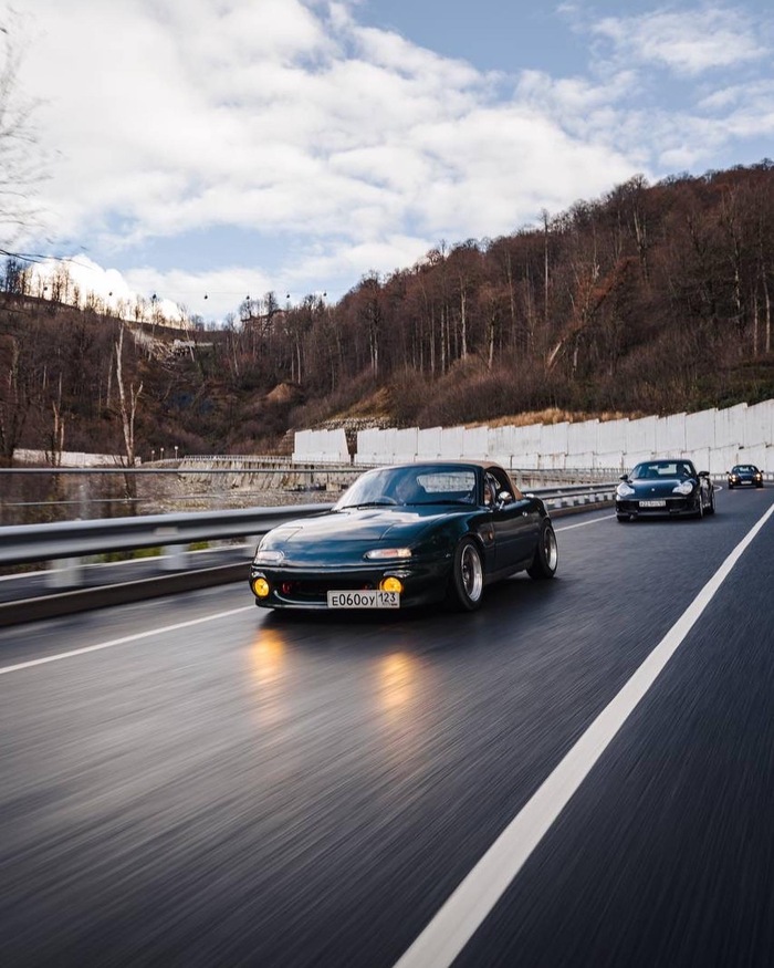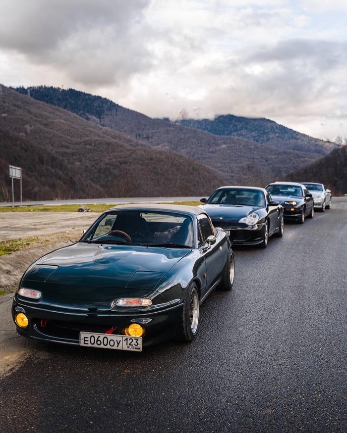 2 красотки: Mazda Roadster (по другому Mazda Miata и Mazda MX-5) 1989 года, и зелёная купешка Mazda RX-7 (также Mazda Savanna). А какую из них выбрал бы Ты?