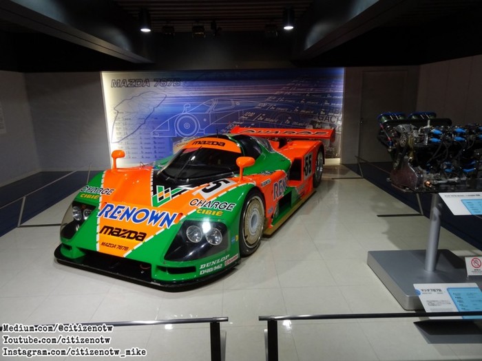 В этом же зале мы знакомимся с гоночным болидом Mazda 787B, который первый (ну и вроде как до сих пор единственный) выиграл гонку на выносливость "24 часа Ле Мана" в 1991 году.