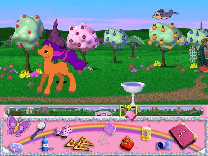 На ферме вы узнаете, как ухаживать за своим пони, используя расческу, бутылочку с лекарствами, продукты, выращенные в вашем саду, и упаковку сока. Вам нужно будет содержать конюшню в порядке и тренировать своего пони в загоне, расставляя препятствия и побуждая его прыгать и исследовать местность.