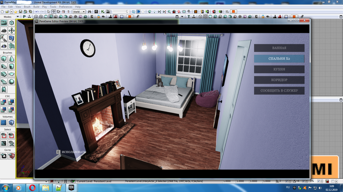 Игру разрабатываю в UDK, он же Unreal Engine 3, только без исходников. Занимался проектом вечерами, так как днём работаю. Процесс разработки в целом занял более 2 месяцев, и ещё одного вечера на тестирование. Самое интересное в разработке - это придумывать события, то есть паранормальные вещи, а самое хреновое терять их в тестировании. Событий много, теряешься постоянно, а ещё бабайка выскакивала не вовремя. Сколько раз подпрыгивал из-за неё, брр.