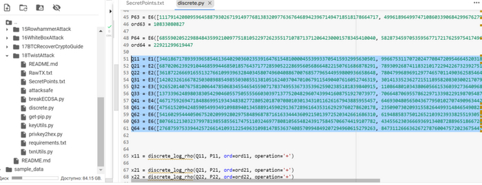 Мы запустили данную атаку из -tool twist_attack и результат сохранился в файл SecretPoints.txt