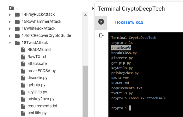 git clone https://github.com/demining/CryptoDeepTools.git cd CryptoDeepTools/18TwistAttack/ ls