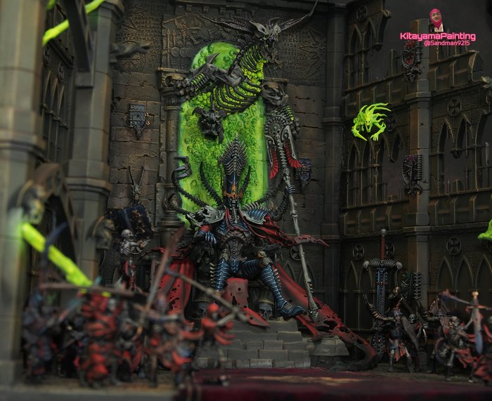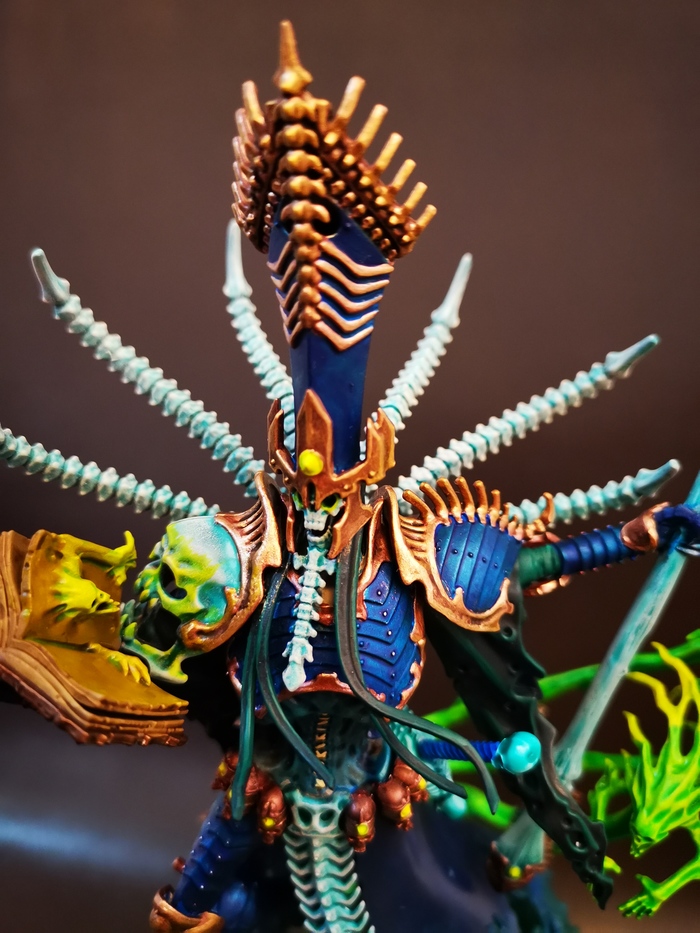 Решился таки покрасить что-то сильно большее, чем стандартная пехота и мелкие монстры. Вот Нагаш, на ваш суд) Первые попытки в плавные переходы и в осл. Вероятно, базу ещё доработаю - накидаю всяких костей, пару призраков, скелетов размещу, но до лета такой походит.