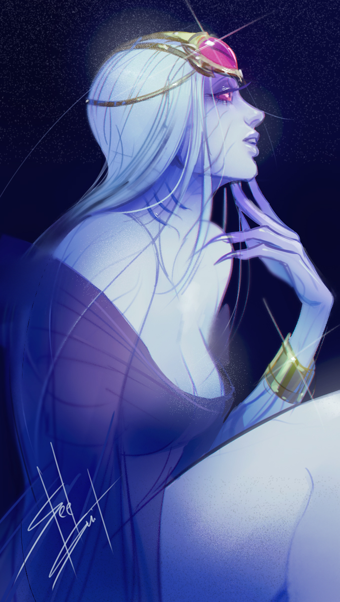 Тема «навигатор» у любого, хотя бы краем слышавшего про лор Warhammer 40000 ассоциируется с представителями Navis Nobilite. Я решил не придумывать что-то интереснее, а нарисовать Навигатора из Вархаммера за работой, хотя и несколько абстрактно. Думаю, примерно так они ощущают себя, когда ведут корабли по Варпу, ориентируясь на свет Астрономикона.