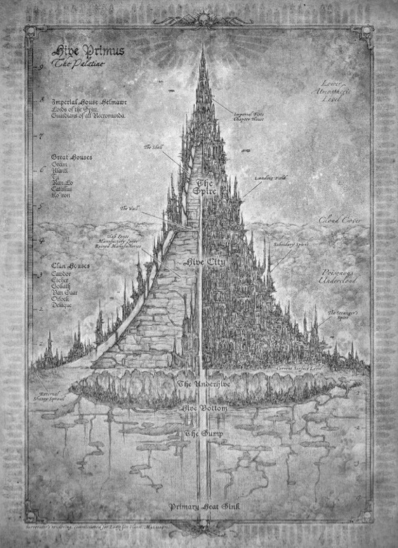 По пути им встречались банды из Пепелограда и даже из таких отдалённых поселений, как Синдерак-Сити, хотя дорожные бригады Орлоков, Эшер и Голиафов разумно держались подальше - обычно после «стимуляции» залпом из болтеров. Далин двигался на восток по Великой пепельной дороге; горные магистрали всё больше заполнялись «карго-8» и патрулями силовиков, когда они попали на задворки Палатинского скопления и покинули глубокие пустоши, где города-ульи медленно начали возвышаться над горизонтом. Великие ульи скопления постепенно увеличивались за последующие дни, то появляясь, то исчезая в клубящихся жёлтых облаках по мере приближения Далина. Крупнейший из них, улей Прим, нависал над прочими; его силуэт пропадал в небесах, никогда не показывая кончик шпиля.