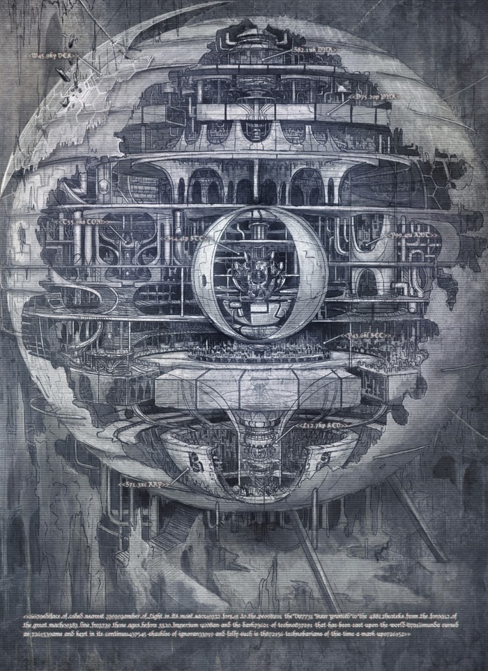 Внутри шум битвы доносился тише, и Далин смог осмотреть заброшенную комнату с грязными штабелями кристаллов данных и мёртвыми мыслящими машинами. Расшифровав древнее терранское письмо, Далин начал шерстить один из штабелей, пока не нашёл то, что искал - осколок предков! Именно в этот момент он почувствовал холодок в спине и повернулся, заметив, как Урсан Гравес появился из тьмы. Беглый псайкер ворвался в комнату, размахивая древним силовым мечом, чьё синее свечение освещало лица обоих бойцов. Далин парировал клинок и нанёс по Урсану ответный удар, хоть и казалось, что, куда бы ни ударило его оружие, владыка Дыры Еретиков каким-то образом тут же исчезал. Вскоре Далину стало ясно, что этот странный человек мог чувствовать его удары до их начала, будучи всегда способным отойти в последний момент. Пожалуй, ещё больше, чем способность противника избегать ударов, Далина беспокоило то, как умело Урсан владел клинком. Вскоре доспех сквата был поражён дюжину раз, и Далин чувствовал, как борода тяжелеет от пота, пока он просто пытался выжить. Если он хочет уцелеть, необходимо было применить менее ортодоксальную тактику; хартийный мастер закрыл глаза и обрушил на врага вихрь ударов, не раздумывая или даже не зная сам, куда они направлены. Наградой стал хруст молота по кости и звук того, как Урсан пролетел по комнате и врезался в противоположную стену.