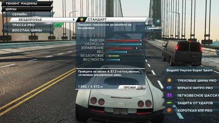 Апгрейд запчастей тоже обычный. Регулировка здесь осуществляется через отдельное меню в гараже. В принципе, она полностью идентична регулировке машин в Most Wanted.