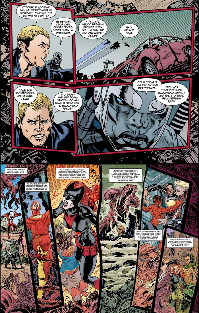 New 52 же этот стиль сохраняет. В последнем фильме серии "Тёмная Лига Справедливости: Война Апоколипса" герои проигрывают Дарксайду, и хотя злодея удаётся победить, Землю всё равно ждёт гибель. Флэш снова путешествует во времени, чтобы перезагрузить весь таймлайн, и это у него получается, но это порождает Мультивселенную (больно много параллелей с Сагой Бесконечности и Сагой Мультивселенной Marvel Studios, не находите?). Единая временная линия начинает бесконечно дробиться, возникает множество новых вариантов Земли с альтернативными версиями одних и тех же персонажей, и это позиционируется как нарушение естественного порядка вещей. То есть Мультивселенную в конечном итоге нужно уничтожить, всё перезагрузить, а все миры должны слиться в один.