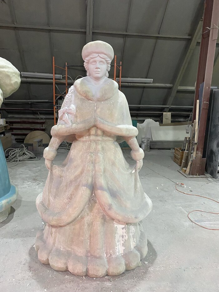К нам, в основном в предновогодний сезон обращаются за фигурами Дед Мороза и Снегурочки, но обращаются все врем очень поздно, когда у нас или загрузка полная или сроки нереальные, чтобы успеть изготовить к Новому Году. Плюс, чаще всего это задача повторить существующих Дед Морозов и снегурочек от других производителей, чего мы делать не хотим)