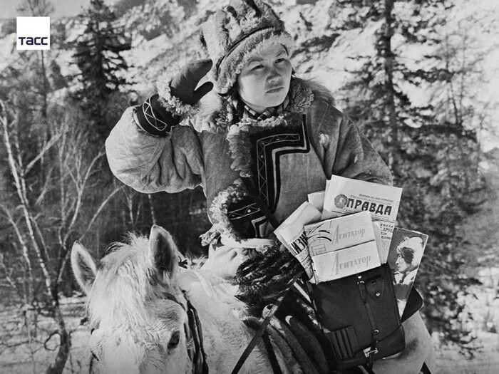 Почтальон из села Большой Яломан на Алтае Валентина Санашева везет почту чабанам. СССР, 1962 год. Фото: Николаев В./ТАСС Источник: информационное агентство ТАСС