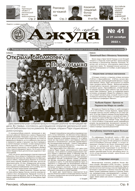 И сегодня я хочу рассказать вам о печатных издания Республики Алтай. Сейчас систему печатных СМИ региона составляют две массовые республиканские газеты, это «Звезда Алтая» и «Алтайдын Чолмоны» (Звезда Алтая). Эти газеты учреждены Правительством Республики Алтай и Государственным собранием — Эл Курултай Республики Алтай.