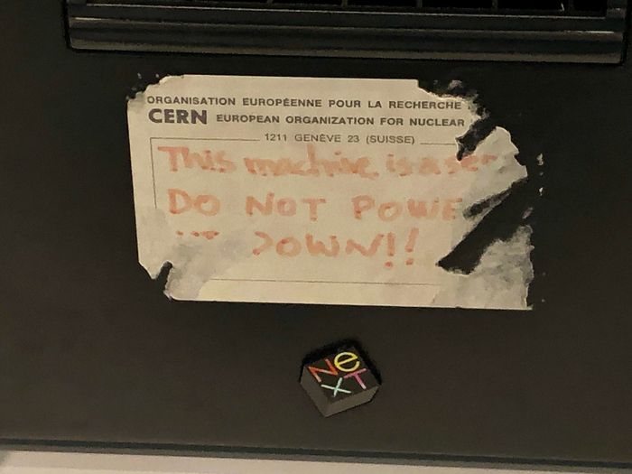 Этот NeXT — оригинальный веб-сервер - все еще находится в ЦЕРНе. В рамках проекта по восстановлению первого веб-сайта в 2013 году ЦЕРН восстановил первый в мире веб-сайт по своему первоначальному адресу — http://info.cern.ch/