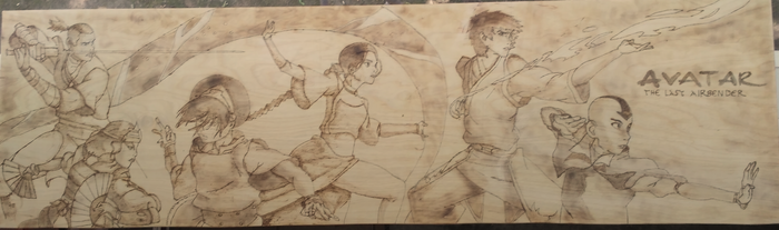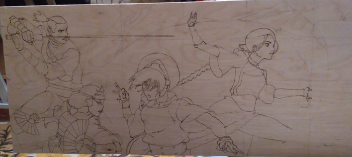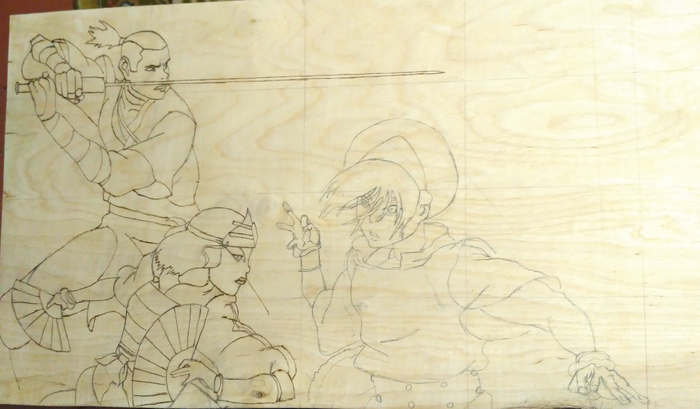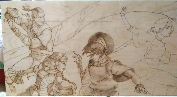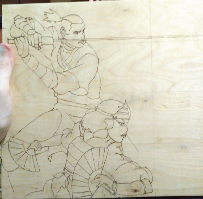 Тут я уже сделал и руку короче, и персонажи тут все, хоть и двоих еще не выжег. А дальше переходим к самому сложному, а то оно как-то просто все выглядит. Весь процесс я не фоткал, ибо долго и утомительно, поэтому вот