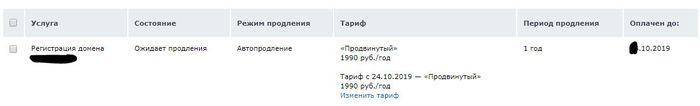 2. Срок оплаты домена заканчивается и, если у вас стоит опция автоматического продления, или вы просто были недостаточно внимательны, продление стоит уже не 890, а 1190 рублей в год.