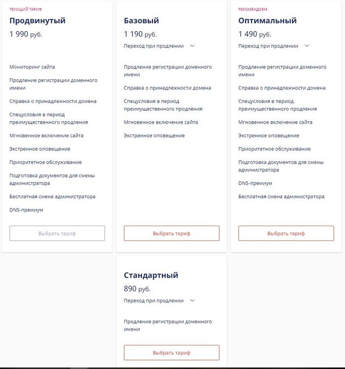 В общем, все то же самое, что было доступно и на старом тарифе, который теперь (?) называется «Стандартный», но есть нюанс: старый тариф – 890 рублей в год, новый – 1190, всего-то 300 рублей разницы за каждый домен.