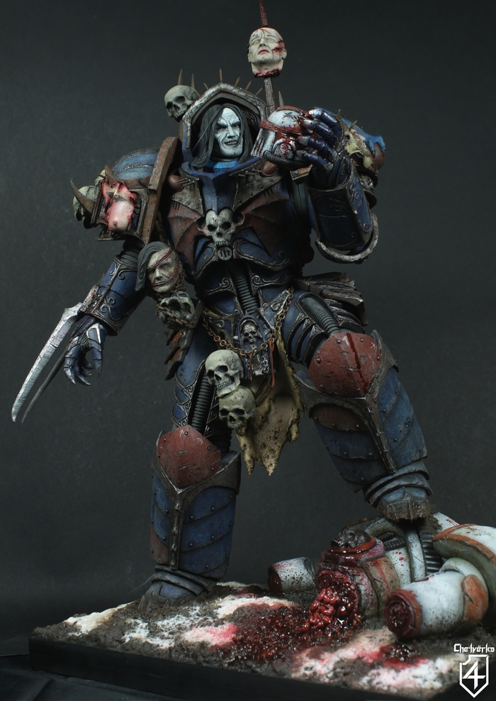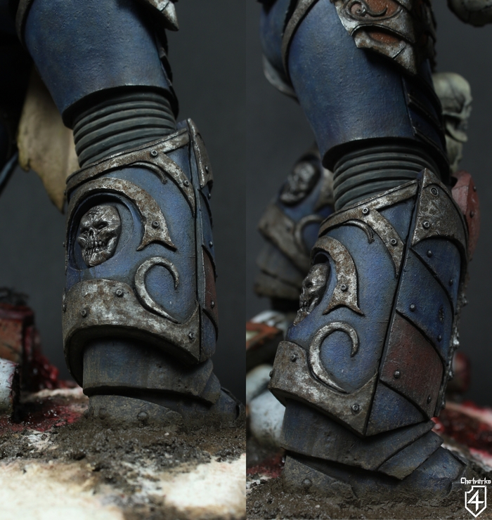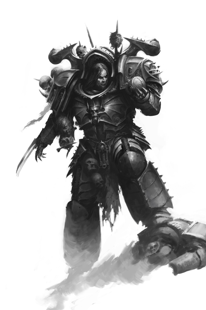 Ветеран-сержант с нашивками Когтей Ночи приземлился прямо на крышу склада, где хранилось оружие Уэйна. Трое клоунов, охранявших вход, открыли огонь из дробовиков. Сержант не уклонился. Дробь звякнула о керамит, не оставив даже царапин. Он медленно повернул голову, и его шлем-череп с красными глазницами уставился на них.