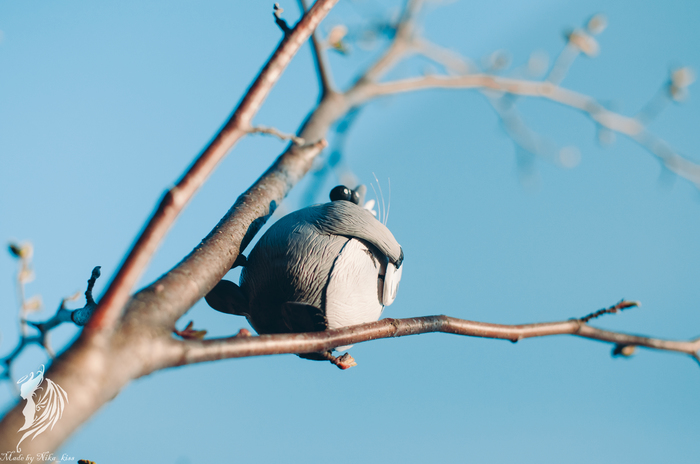 Как только глаза прибыли, я приступила к работе. В первую очередь был сделан проволочный каркас, который обернула фольгой. Затем пошла работа с полимерной глиной: корпус с "прорисовкой" мышц и очертаний тельца, далее голова с мордашкой, на которую ушло немало времени + передние лапки (здесь же текстура и тонировка), ну и далее все тело, включая задние лапы и хвост, снова "прорисовка" шерстинок и опять предварительная тонировка. После полного запекания нанесла рисунок акриловыми красками. Так появился мини-Вайфайка.
