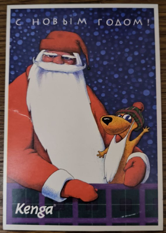 Логотип Kenga на глянцевом картоне, будто из витрины прошлого. Бумага плотная, по краям уже тронутая временем, краска до сих пор отливает блеском. Шрифт, который когда-то воспринимался как вершина оформления. Такие вещи не отправлялись в мусор. Их ставили в сервант, между бокалами и вазами, на виду.