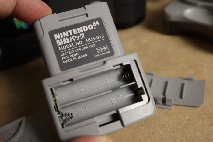 rumble pak n64 – съемный аксессуар c функцией вибрации. Работает на двух мизинчиковых батарейках и вставляется в тот же слот геймпада, что и карта памяти. Впервые появился в комплекте с игрой Star Fox 64 в 1997 году и стал её эксклюзивной фишкой, а уже через 2 месяца продавался отдельно, получив поддержку огромного количества будущих игр. Штука занятная, но есть ряд минусов. 1) Аксессуар требует батареек, поэтому игра с вибрацией дело затратное, рекомендую купить перезаряжаемые аккумуляторы, как это сделал я например. 2) Рамблпак утяжеляет и без того немаленький геймпад, ничего критичного, но факт остаётся фактом 3) Если сохранения игры пишутся на внешнюю карту памяти – то во время каждого сохранения тебе придётся менять местами контроллер пак и рамбл пак, а после сохранения возвращать всё на место, если ты конечно всё еще хочешь играть с вибрацией. В дальнейшем появились аксессуары от сторонних производителей, которые позволяли использовать одновременно и вибрацию и функцию сохранения. Например TremorPak plus, не сказал бы, что это удобно, да и вес геймпада не становился меньше. Кстати говоря именно благодаря Nintendo 64 мы получили встроенную вибрацию в геймпаде – как стандарт.