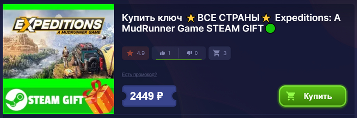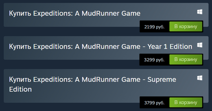 Переходим в категорию Expeditions: A MudRunner Game и выбираем подходящий товар. Также, как и в предыдущем способе, смотрим на его критерии, внимательно читаем описание и оплачиваем.