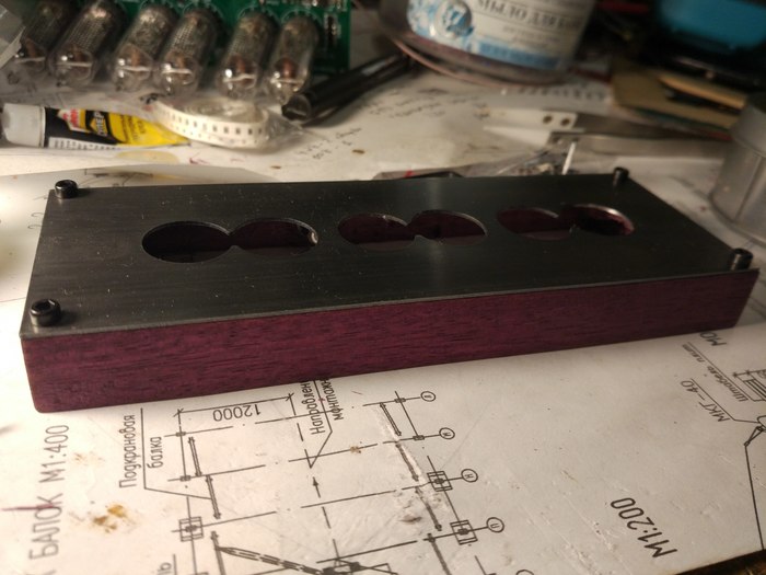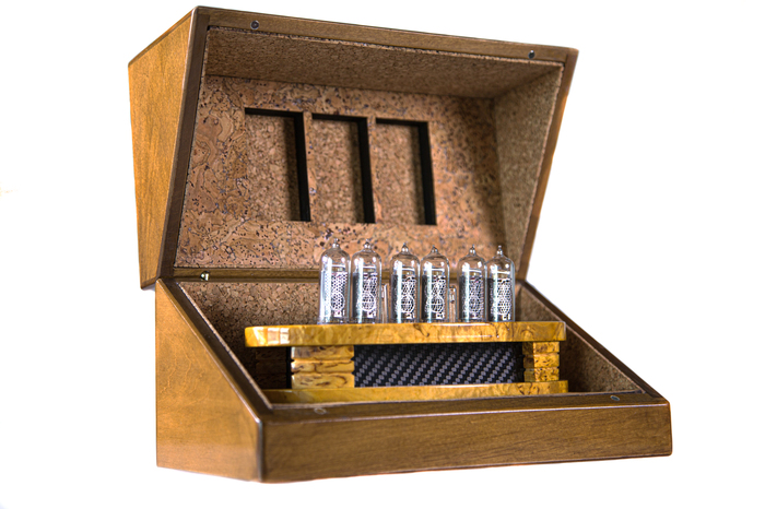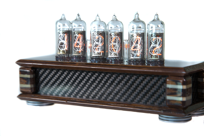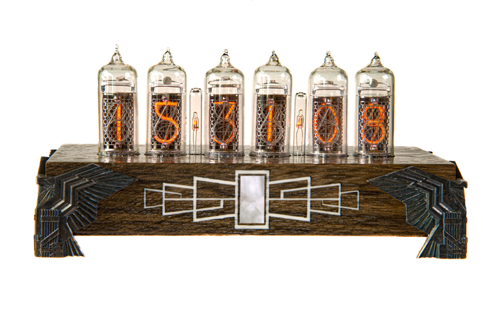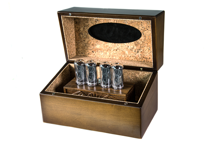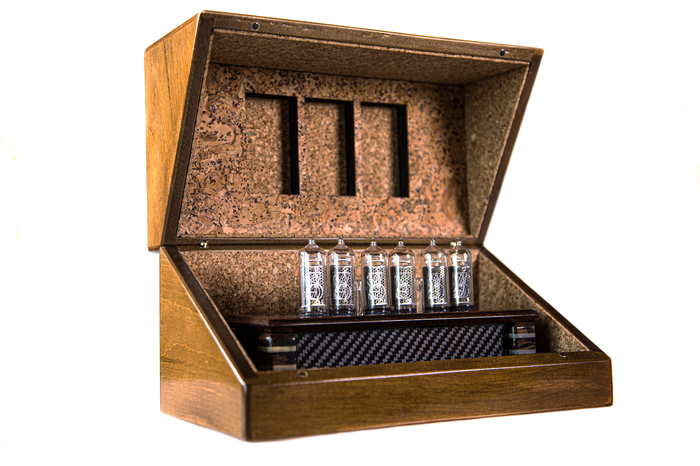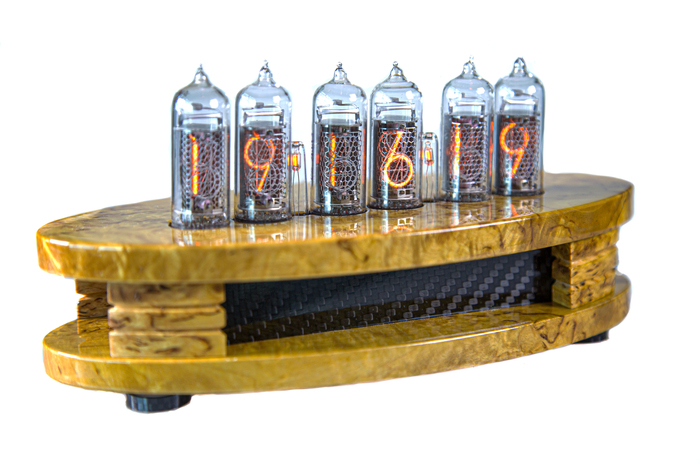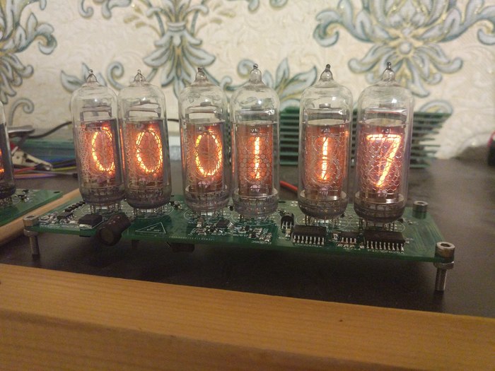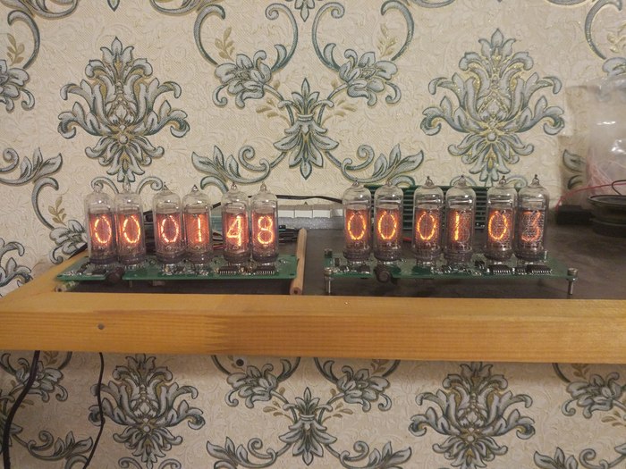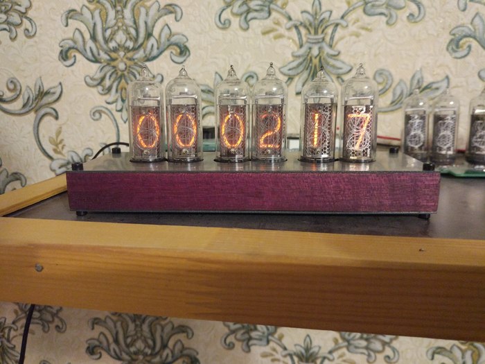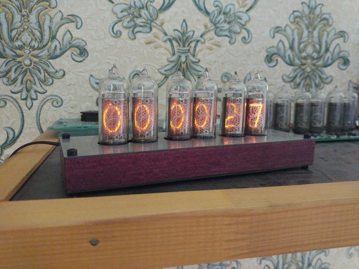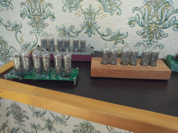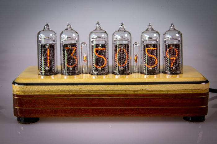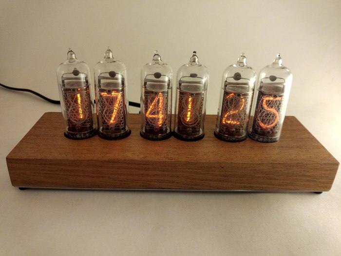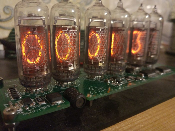 Я уже один раз делал часы на этих ГРИ, под заказ, и повторять конструкцию не планировал, но тут ко мне попало некоторое количество этих ламп, так что решено было сделать ещё пару таких часов. Отличие их от ИН-14 - немного другая форма баллонов, всего одна точка, иное расположение выводов и немного изменённые цифры, в частности любимая многими "правильная" пятёрка: