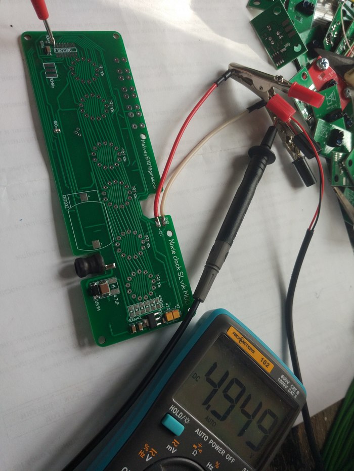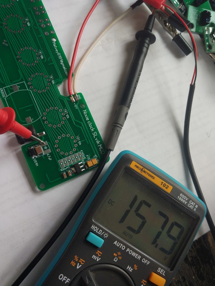 Так как плата новая, сборку производил по этапам. Сначала - понижающий преобразователь из 12 в 5 Вольт: