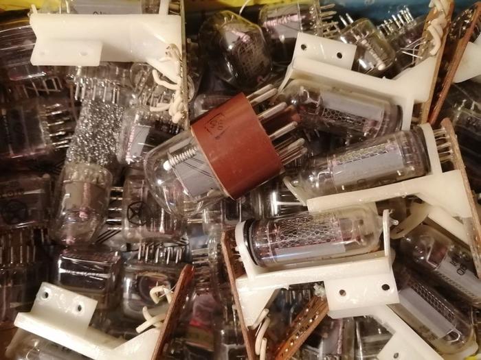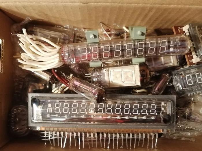 Неликвид состоял из электронных компонентов, которые нам отдали безвозмездно для использования в личных целях, чтобы не тратить средства на утилизацию. На самом деле, там было очень много ценных компонентов, среди которых оказались неоновые индикаторные лампы марки ИН-12. В итоге я их забрал себе. С радиолампами знаком еще с детства, увлекаясь радиоконструированием, я часто собирал различные схемы, в том числе и на лампах. А тут такой флешбэк.