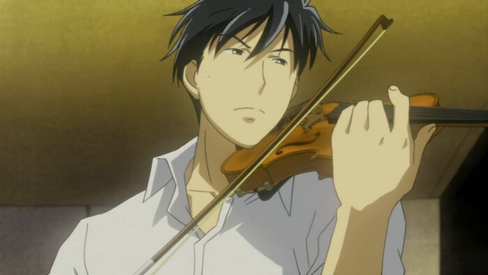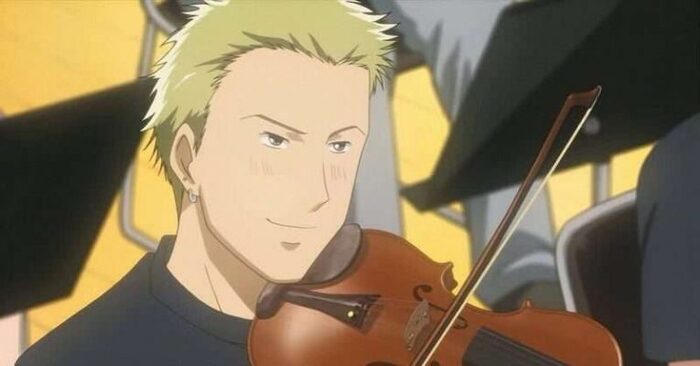 И четвёртый персонаж, о котором хочется рассказать это... вот этот. Когда он только появляется бесит своим высокомерием и тем что пренебрежительно относится к Чиаки. Но чуть позже он меняется: начинает дружить с Чиаки и даже помогает ему в управлении оркестром, став концерт-мейстером. А так в целом молодой человек, мечтающий стать прекрасным скрипачом, и подружиться с остальными в оркестре музыкантами.