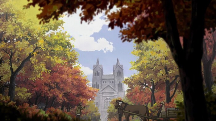 Слабая рисовка? Ну а что вы хотите, аниме 2008 года. На самом деле тут всё равно отнеслись с любовью к оригиналу: такие же замки как в манге, такие же персонажи. Правда, Холо в аниме выглядит лучше Холо в манге. Но это уже на "кому какие фломастеры".