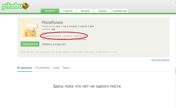 [UPD]: через час отметки о посте пропали, что создало забавную картину: у человека без комментариев и постов есть рейтинг)