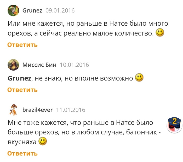 Когда был мелким, папа где-то достал упаковку с батончиками Nuts. В 90х это было невообразимо здорово. Родители спрятали ее в кладовке на 2ой полке и сначала выдавали нам с братом по шоколадке в день. Вскоре nuts всем приелся и его запасы растянулись надолго. С тех пор сластёна с лесными орехами в молочном шоколаде - вкус из детства. Повзрослев, на сладкое стал меньше обращать внимание, но нет нет да покупал на кассах Nuts, как и сегодня. Сразу почуял подвох. В батончики явно стали меньше ложить орехов, печаль.