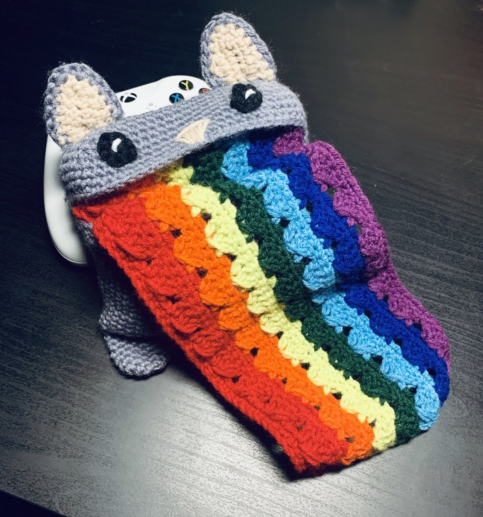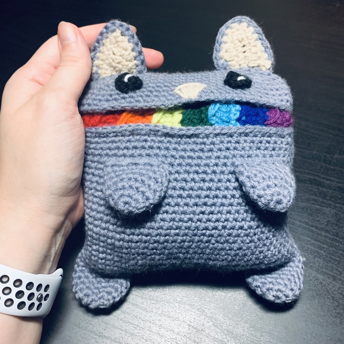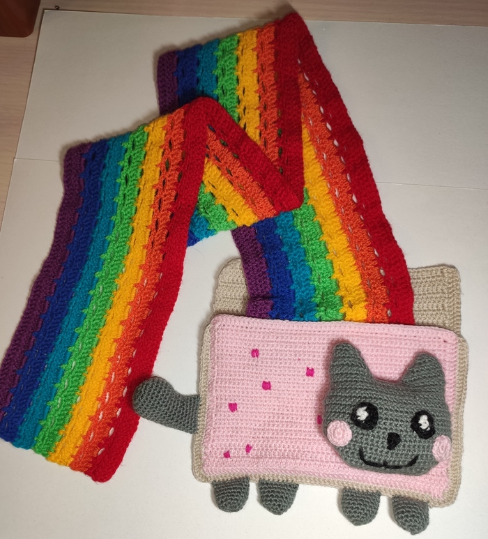 Схему нашла тут : https://www.ravelry.com/patterns/library/rainbow-barf-cat-pl...