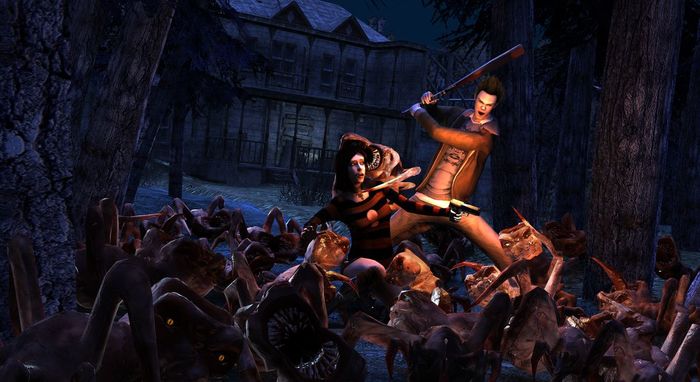 Но несмотря на малое количество местные монструозины весьма интересны. Тут есть и мелкие и быстрые кусаки, и мутирующие студенты, что слабы на ранних стадиях превращения, а на поздних могут выдать на орехи по первое число, и ползающие по потолку насекомообразные существа, и нечто из нескольких человеческих тел, и огромная жирная бабища из бухгалтерии что является маткой для более мелких слизней, в общем все что нужно чтобы и разнообразно и монстры не надоедали. И вся это мерзость окружена темной аурой, что в некоторой степени поглощает урон, так еще они и распространяют эту ересь вокруг себя, чем изрядно отравляют жизнь героям.