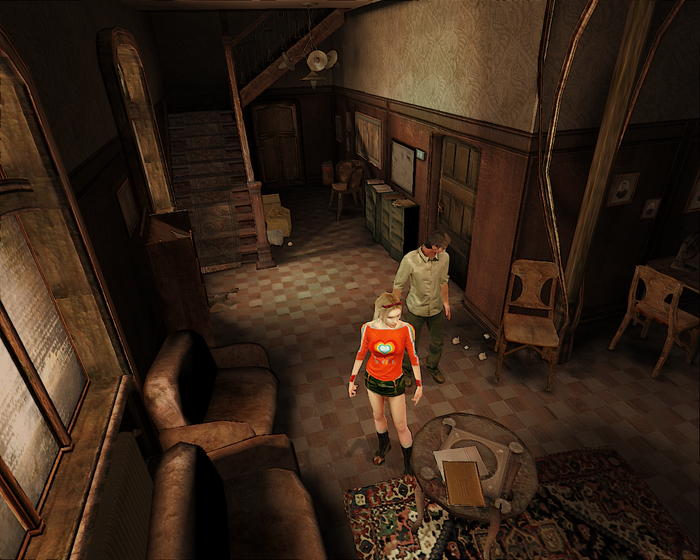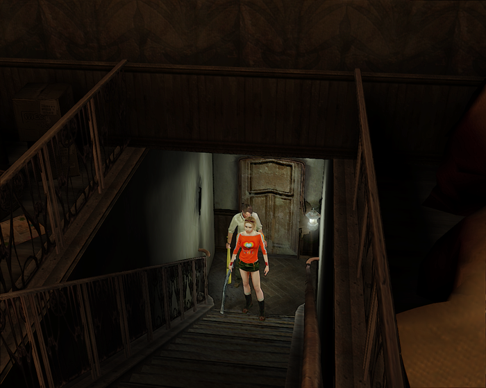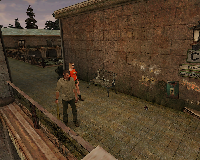 Назвать картинку отличной язык не повернется. Но видно, что дизайнеры не жалели сил на проработку окружения: блеклый свет пасмурного дня снаружи и напряженный мрак помещений и коридоров внутри, мерцающие фонарики героев, неплохая для своего времени анимация и модели, обшарпанные и грязные текстуры помещений очень хорошо создают образ старой, опустевшей школы, что словно проклятая крепость скрывает в своих затхлых катакомбах жуткие тайны.