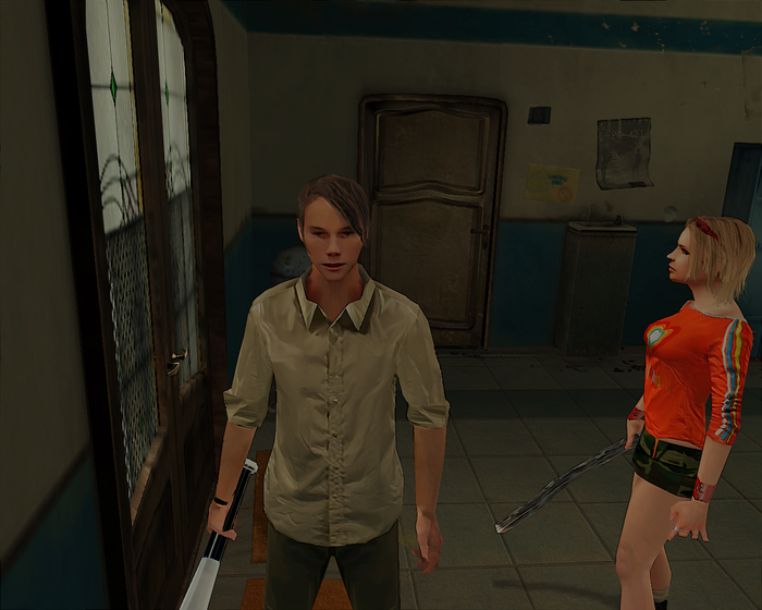 Под наше управление попадает 2 персонажа за раз, между которыми можно переключаться на лету. Сменить напарника можно практически в любой момент времени, нужно только вернуться в условную "безопасную зону". Причем ИИ не самый тупой, понятно, что особо не помощник, но втащить врагу может и без лишних подсказок. Правда делать он это будет тем оружием, что даст ему игрок, автосмена пушки не предусмотрена. Поэтому если игрок вручил ИИ нож, то будь тот хоть весь обвешан дробовиками, драться все равно будет ножом. Ко всему прочему в игре предусмотрен кооп на одном компе, что добавляет игре плюсиков. Но стоит помнить, что смерть персонажа перманента, и если игрок в задорной битве забудет полечить напарника и с тем случится легкий случай смерти, то дальше придется идти без него отряд не заметил потери бойца. Количество выживших персонажей к концу игры влияет в основном на бонусы после прохождения и на финальный ролик, сама же концовка всегда одинакова.