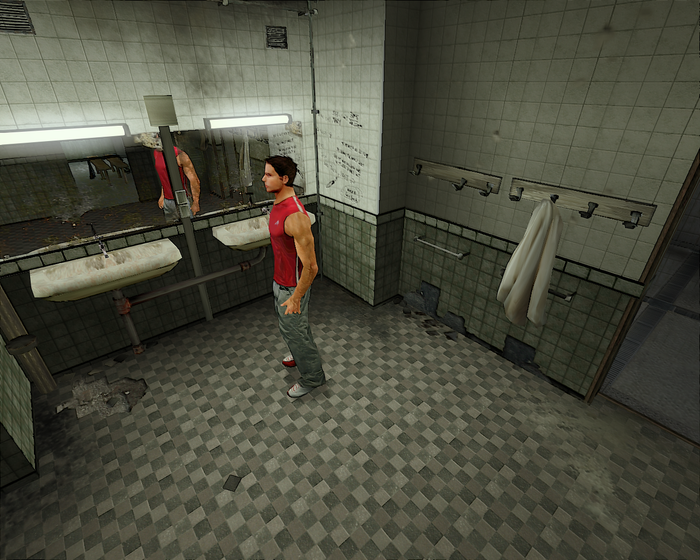 Ребятушки из Hydravision написали свой движок и прикрутили к ней свою физику с блэкджеком и...ну вы в курсе. Правда ждать от нее красивого рэгдола или зрелищно разлетающихся кусков чего-либо не стоит, но предметы со столов падают, а мелкая утварь и мебель двигается если в нее упереться. А раз предметы двигаются согласно законам физики, это значит что намертво прибитая к полу табуретка не станет для игрока непреодолимой преградой, при попытке свалить от особо злого врага.