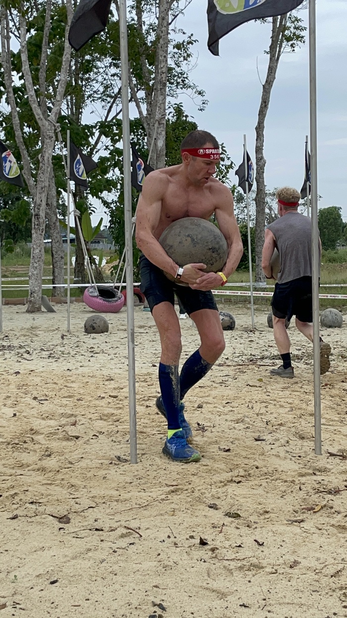 Итак, старт. Первое препятствие — переноска груза вокруг озера на примерно километр. Сильно не газую, пытаюсь войти в боевой режим, а потом уже дать жару. Знаю, что впереди много препятствий, и все они средней сложности, хотя для меня сложности они особо не представляют. Единственное — два последних препятствия достаточно коварные, и одно из них очень сложно проходится в мокрую погоду: скользкий металл, за который просто не схватишься. Но не будем забегать вперёд. Так как мы стартовали волнами, не очень понятно, кто каким бежит, так как до меня уже стартовало несколько волн. Ещё интересные правила: если не проходишь препятствие, то тебе его записывают в минус. Общий итог вычисляется сначала из тех, кто прошёл все препятствия и быстрее прибежал, а потом уже из тех, кто пропустил одно препятствие и так далее.