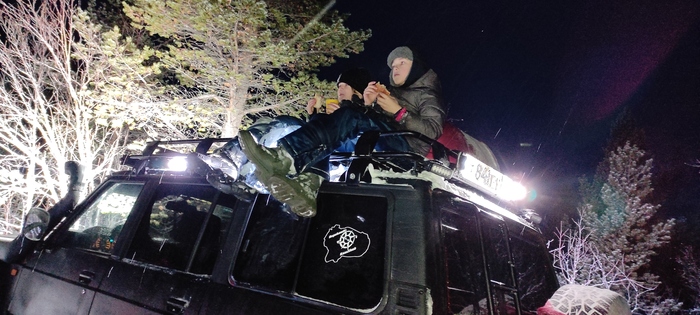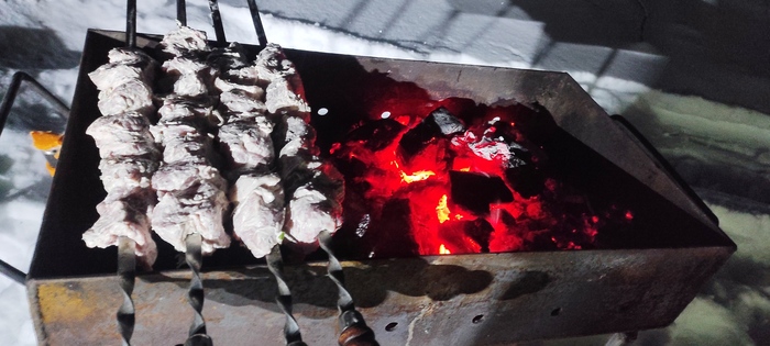 Приехав в запланированное место нажарили мяса, попили чаю, поговорили и двинулись в обратный путь.