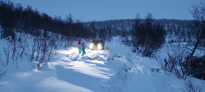 Второе место проходили ходом и по глупости, или в спешке выбрали не правильную траекторию. В итоге мой патруль на боку в болоте по самые дверные ручки. Понемногу вытащили динамкой и поехали дальше...