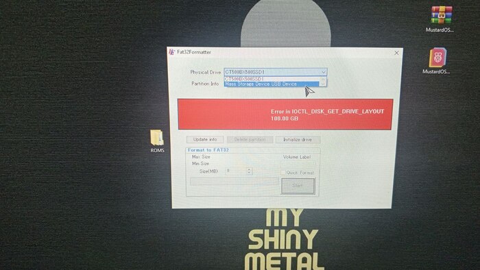 Имеется карта памяти Kingston 128 Gb, её необходимо отформатировать в FAT32 (иначе консоль anbernic её не видит). И все утилиты дружно выдают ошибку. FAT32formatter вот это выдаёт (прошу прощения за фотографию экрана, нет возможности скинуть нормальные скрины потому что wifi адаптер сломался, а через флешку скидывать не телефон не хочу из-за вероятности сломать рамку симки)