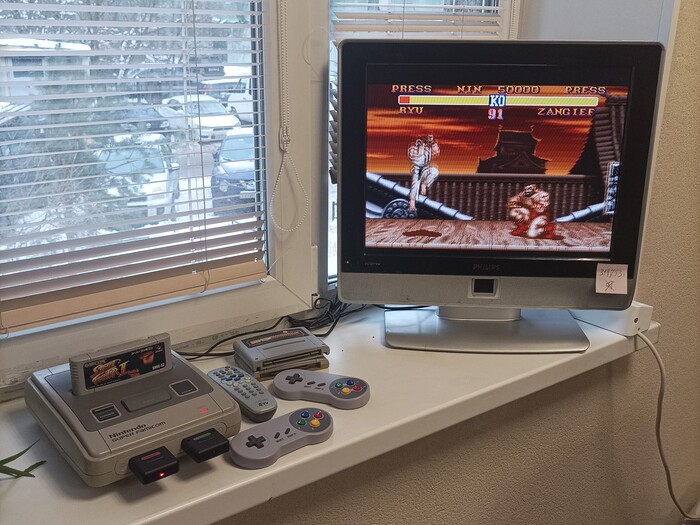 Приобрёл телевизор на авито под ретро, но чтобы место не занимал и входов много. Продавец чутка обманул и телик оказался отельным, с блокировкой. С коллегой блок сняли, настроили, очень прикольный девайс. Сегодня принёс ретро консолей, потестим)